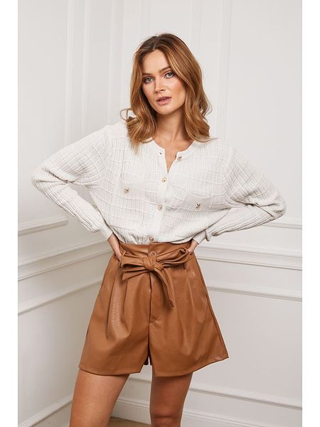 – z dodatkiem kaszmiru- dekolt: okrągły- zapięcie: listwa guzikowa- krój rękawów: nietoperz- ściągacz: dekolt, zakończenia rękawów, dolny brzeg- kieszenie: na piersi- krój: luźny- look: jednokolorowy