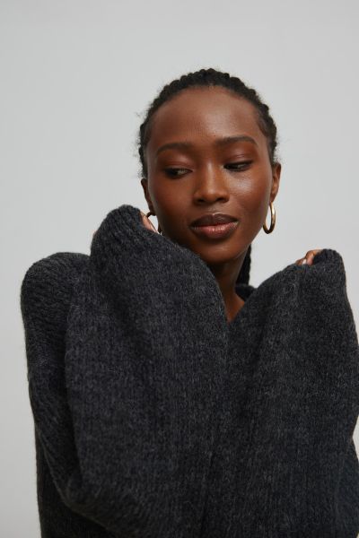 Sweter oversize z bufiastym rękawem GRAFITOWY – RIVERO-UNI