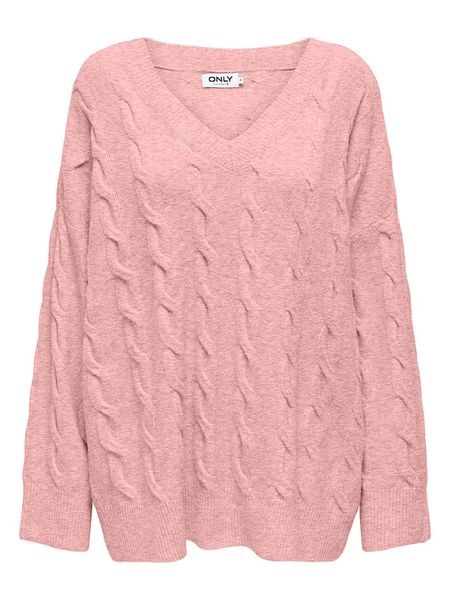 – z dodatkiem poliestru pochodzącego z recyklingu- dekolt: V- ściągacz: dekolt, zakończenia rękawów, dolny brzeg- wzór splotu: warkocz- krój: luźny- look: jednokolorowy