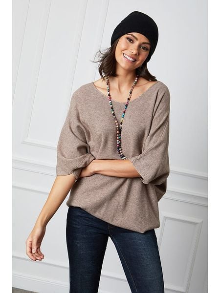 – z dodatkiem kaszmiru- dekolt: okrągły- krój rękawów: motylek- długość rękawa: 3/4- krój: luźny- wzór: melanżowy