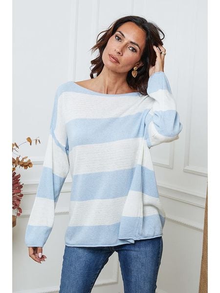 – z dodatkiem kaszmiru i wełny- dekolt: okrągły- krój: luźny- wzór: paski- wzór splotu: ścisły