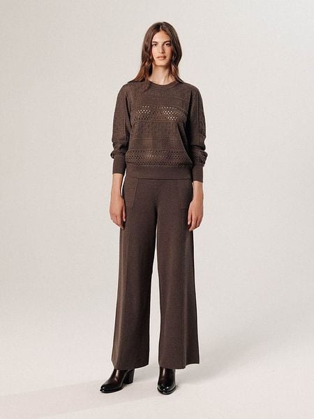 – z dodatkiem wełny- dekolt: okrągły- ściągacz: kołnierz, zakończenia rękawów, dolny brzeg- krój: luźny- wzór: dziurkowany