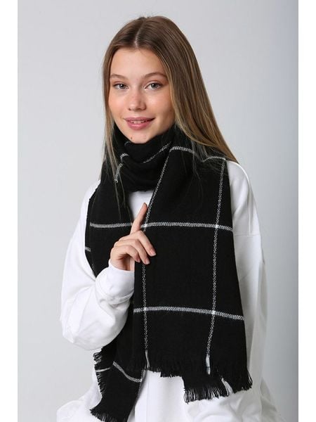 – ciepły i przyjazny dla skóry materiał- właściwości termoregulacyjne- frędzelki: krótkie- wzór: kratka