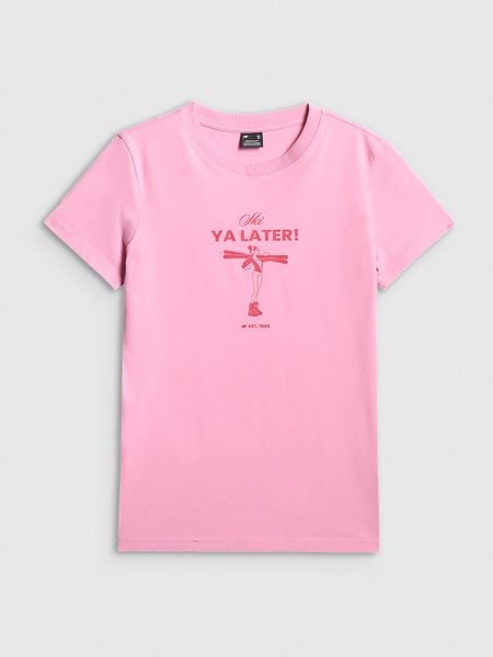 4F T-shirt regular z nadrukiem damski – różowy XL