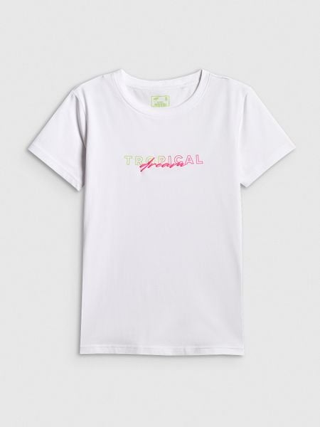 4F T-shirt slim z nadrukiem damski – biały S