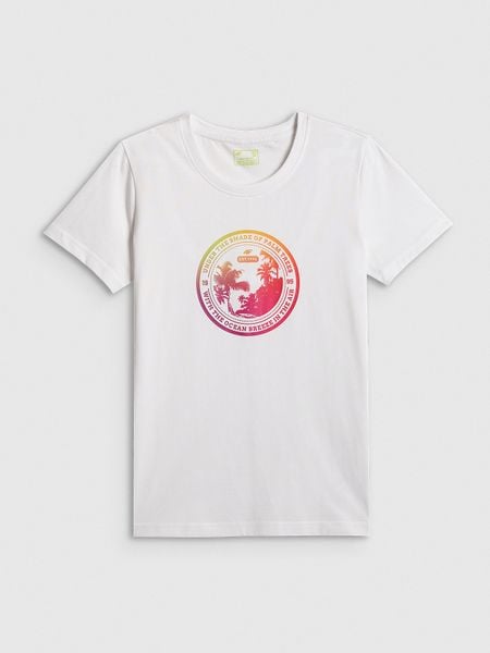 4F T-shirt regular z nadrukiem damski – biały XS