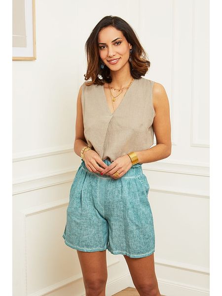 – czysty len- ramiączka: szerokie- dekolt: V- detale: ozdobna zakładka- krój: prosty- look: jednokolorowyUwaga: Na metkach odzieży tej marki znajdują się rozmiary francuskie. Rozmiarówka została przez nas przeliczona. Podane do wyboru warianty rozmiarów odpowiadają standardowym europejskim rozmiarom konfekcji. Prosimy zapoznać się z zamieszczonym objaśnieniem rozmiarów.