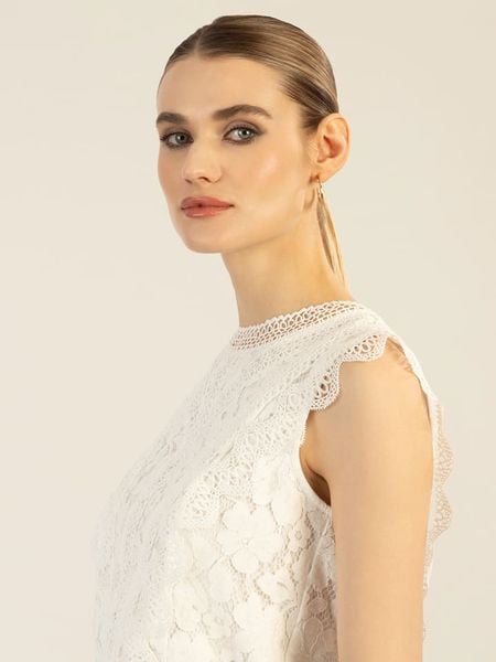 – ramiączka: szerokie- dekolt: okrągły- zapięcie: suwak na plecach- detale: szydełkowana koronka- krój: prosty- look: jednokolorowy