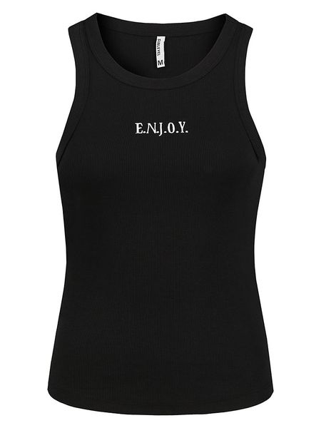 – ramiączka: szerokie- dekolt: okrągły- krój: prosty- look: jednokolorowy- nadruk: w formie napisu