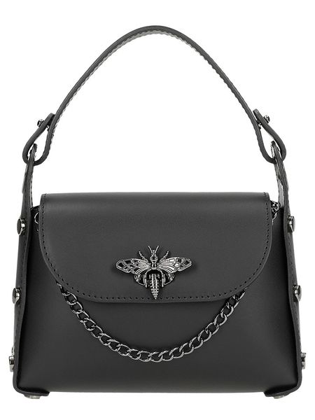 – materiał: skóra- uchwyt: 1 – długi pasek przez ramię: odpinany- zapięcie: wtyk- detale: ozdobne nity