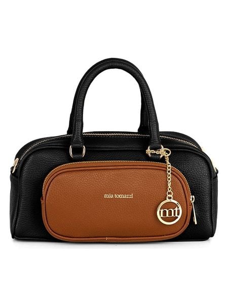 Mia Tomazzi Skórzana torebka „Barellai” w kolorze czarno-jasnobrązowym – 29 x 13 x 9 cm rozmiar: onesize
