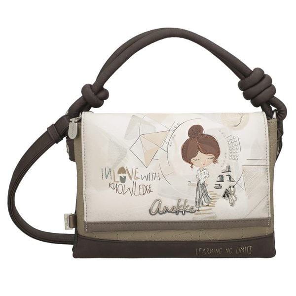 Listonoszka damska Anekke, z klapką z dekoracyjnym nadrukiem i krótką rączką z ozdobnymi węzłami wyposażona w dodatkowy pasek na ramię, wielokolorowa
