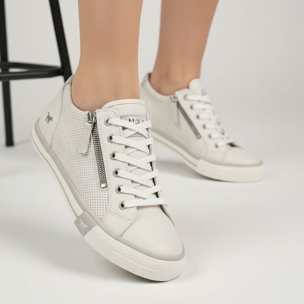 Trampki damskie Mustang, cholewka ze skóry ekologicznej perforowana konstrukcja sznurowanie uzupełnione bocznym zamkiem niska stabilna podeszwa zapew