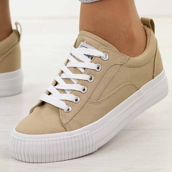 Klasyczne beżowe trampki damskieto ponadczasowa propozycja na wiosnę i lato, idealna do codziennych, casualowych stylizacji. Cholewka wykonana z lekkiego materiału tekstylnego zapewnia przewiewność i komfort noszenia nawet w cieplejsze dni. Model sznurowany umożliwia dobre dopasowanie do stopy, a miękka wkładka zwiększa wygodę podczas długiego użytkowania. Trampki osadzone są na modnym płaskim spodzie typu platforma, który dodaje […]