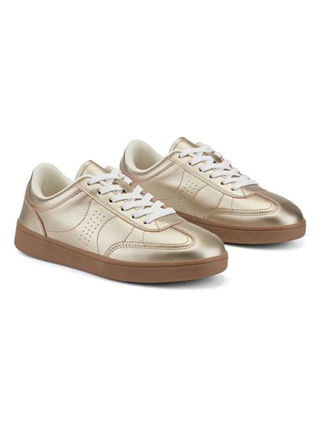 – zapięcie: sznurowanie- noski: zaokrąglone- noski i zapiętki: wzmocnione- powierzchnia: z metalicznym połyskiem- dookoła gumowanie- podeszwa: antypoślizgowa