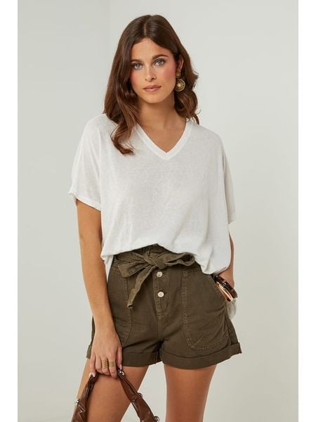 – z dodatkiem lnu- dekolt: V- długość rękawa: półdługi- krój: oversized- look: jednokolorowyWskazówka: Na metkach odzieży tej marki znajdują się rozmiary francuskie. Rozmiarówka została przez nas przeliczona. Podane do wyboru warianty rozmiarów odpowiadają standardowym europejskim rozmiarom konfekcji. Prosimy zapoznać się z zamieszczonym objaśnieniem rozmiarów.