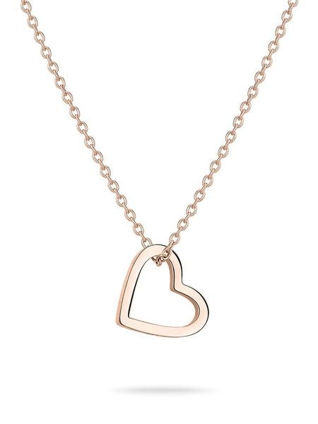 – materiał: stal szlachetna- powłoka: w kolorze różowego złota- typ łańcuszka: okrągły ankier- zapięcie: karabińczyk- kształt zawieszki: serce- regulacja długości: takWskazówka: Zdjęcie produktu w powiększeniu.