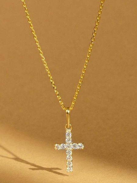 – materiał: 9-karatowe złoto próby 375- rodzaj kamienia: cyrkonia- kształt zawieszki: krzyż- naszyjnik w zestawie: nieWskazówka: Zdjęcie produktu w powiększeniu.