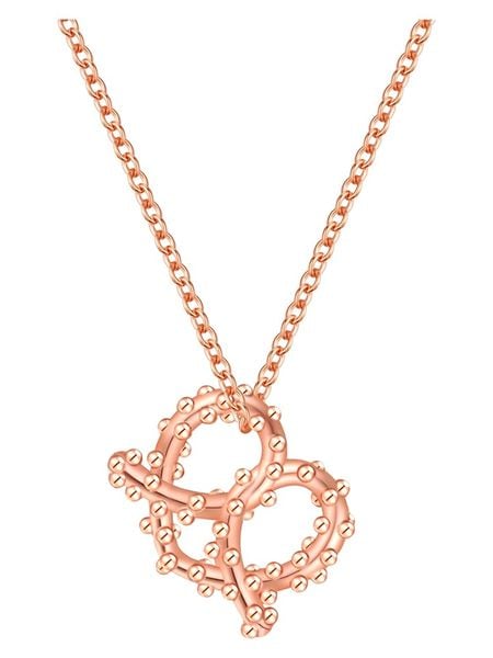– materiał: srebro Sterling próby 925- powłoka: 14K różowe złoto- typ łańcuszka: pancerka- zapięcie: federing- kształt zawieszki: precel- regulacja długości: tak- dołączona kartka okolicznościowa w języku niemieckim- opakowanie: pudełko prezentoweWskazówka: Zdjęcie produktu w powiększeniu.