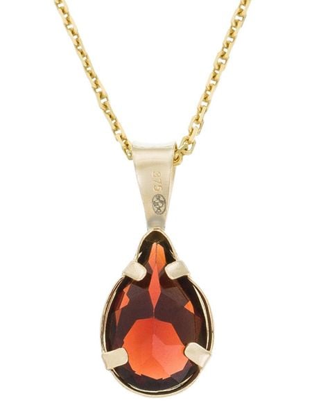 – materiał: 9-karatowe złoto próby 375- rodzaj kamienia: granat- kolor kamienia: czerwony- łańcuszek w komplecie: nieWskazówka: Zdjęcie produktu w powiększeniu.